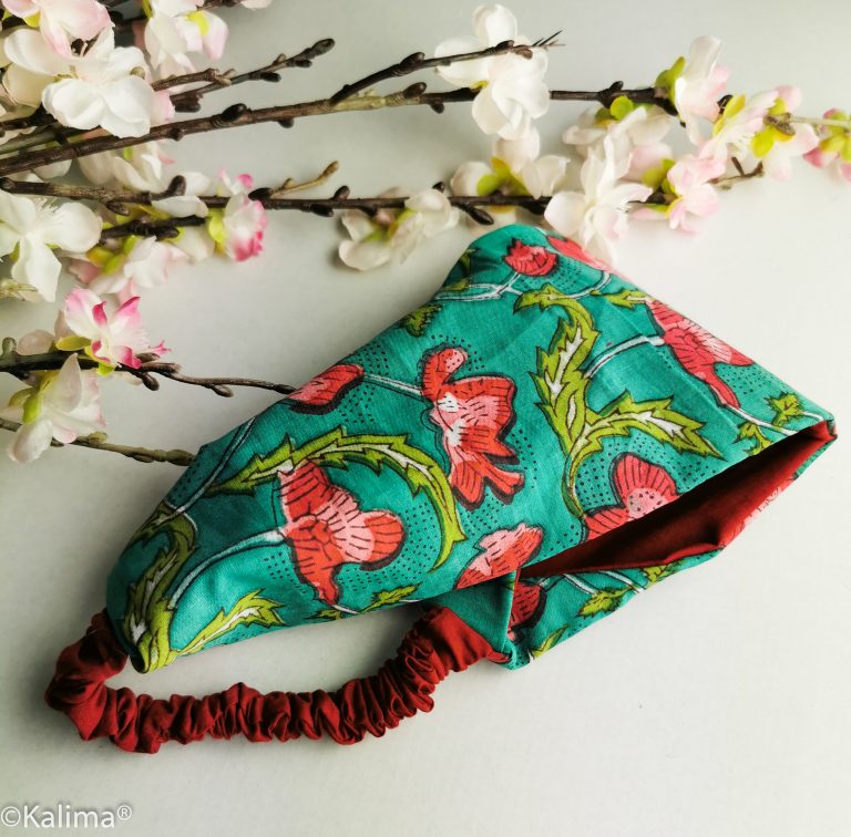 Damen Haarband in 2 Ausführungen aus unseren Handgedruckten Mohnstoff. Wendehaarband mit Gummi in Mohn und Bordeaux Rot, oder zum binden. Baumwolle