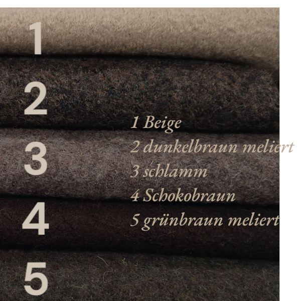 | Farbe | Schokobraun, Beige, Dunkelbraun meliert, Schlamm, Grünbraun meliert, Sonstige |